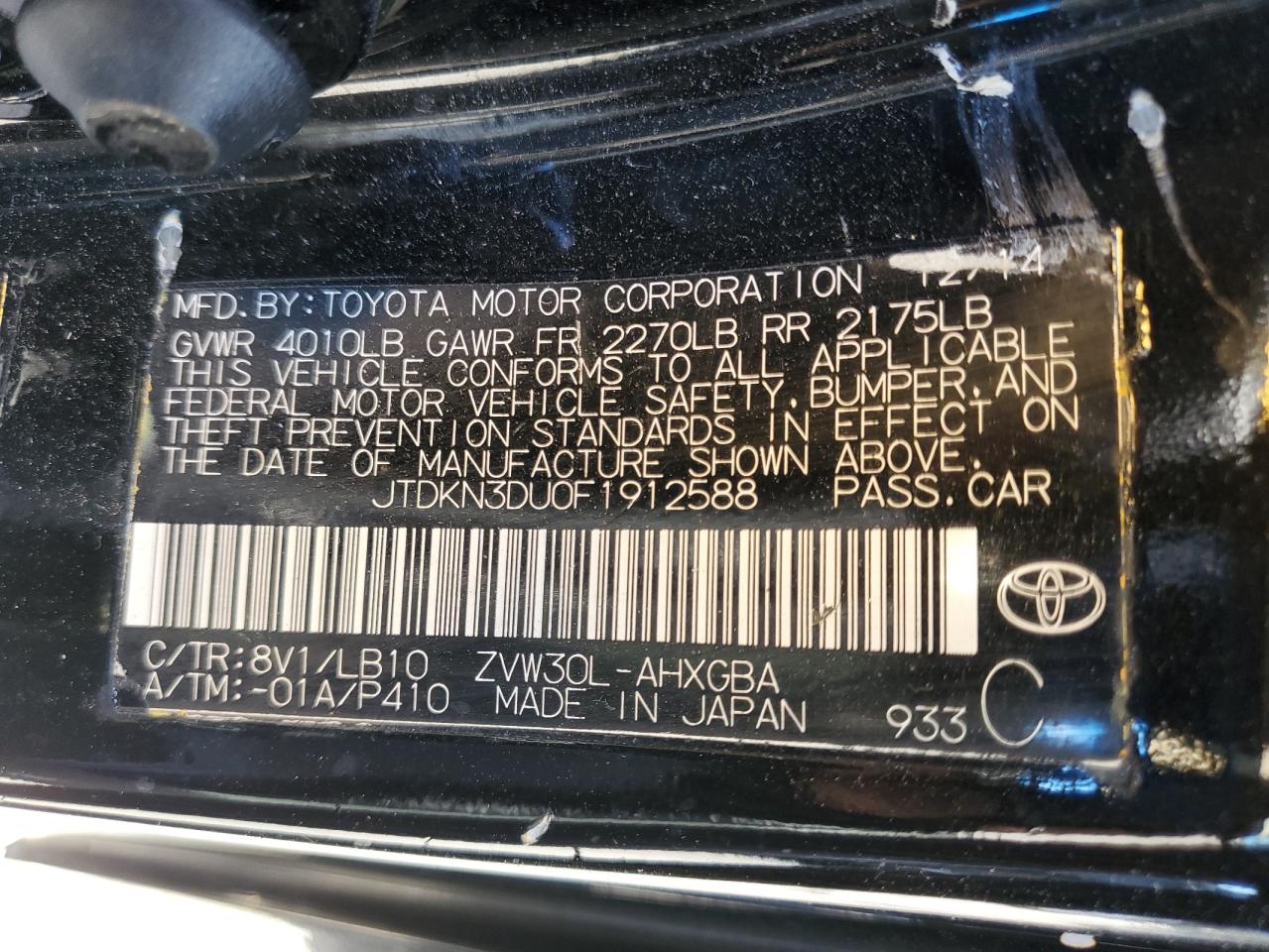TOYOTA PRIUS 1.8 2015 р.в., (JTDKN3DU0F1912588) з США