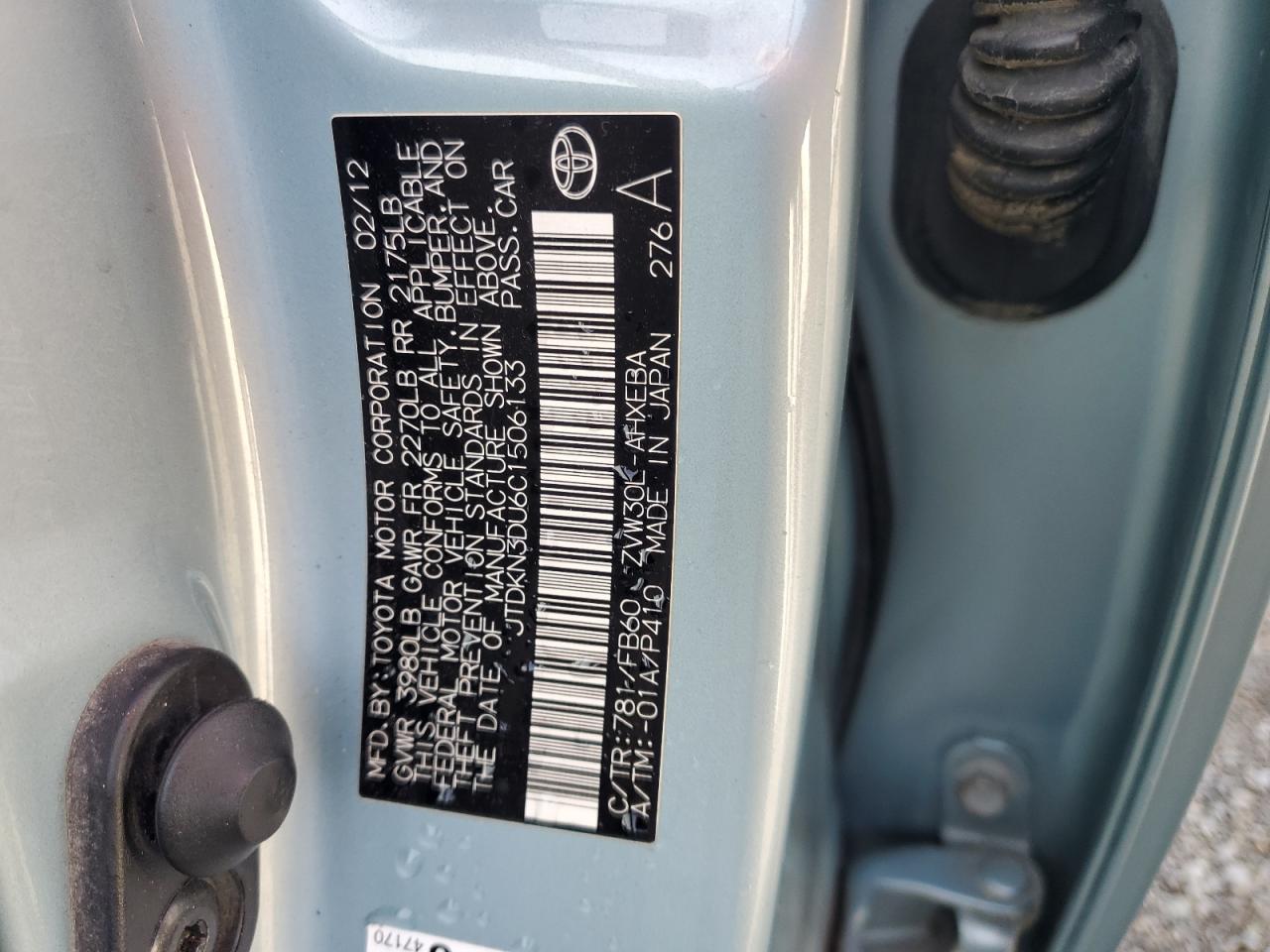 Колір БірюзовийЦиліндри 4VIN JTDKN3DU6C1506133Стан Заводиться та їде (перевірено)Ушкодження Передня або задня