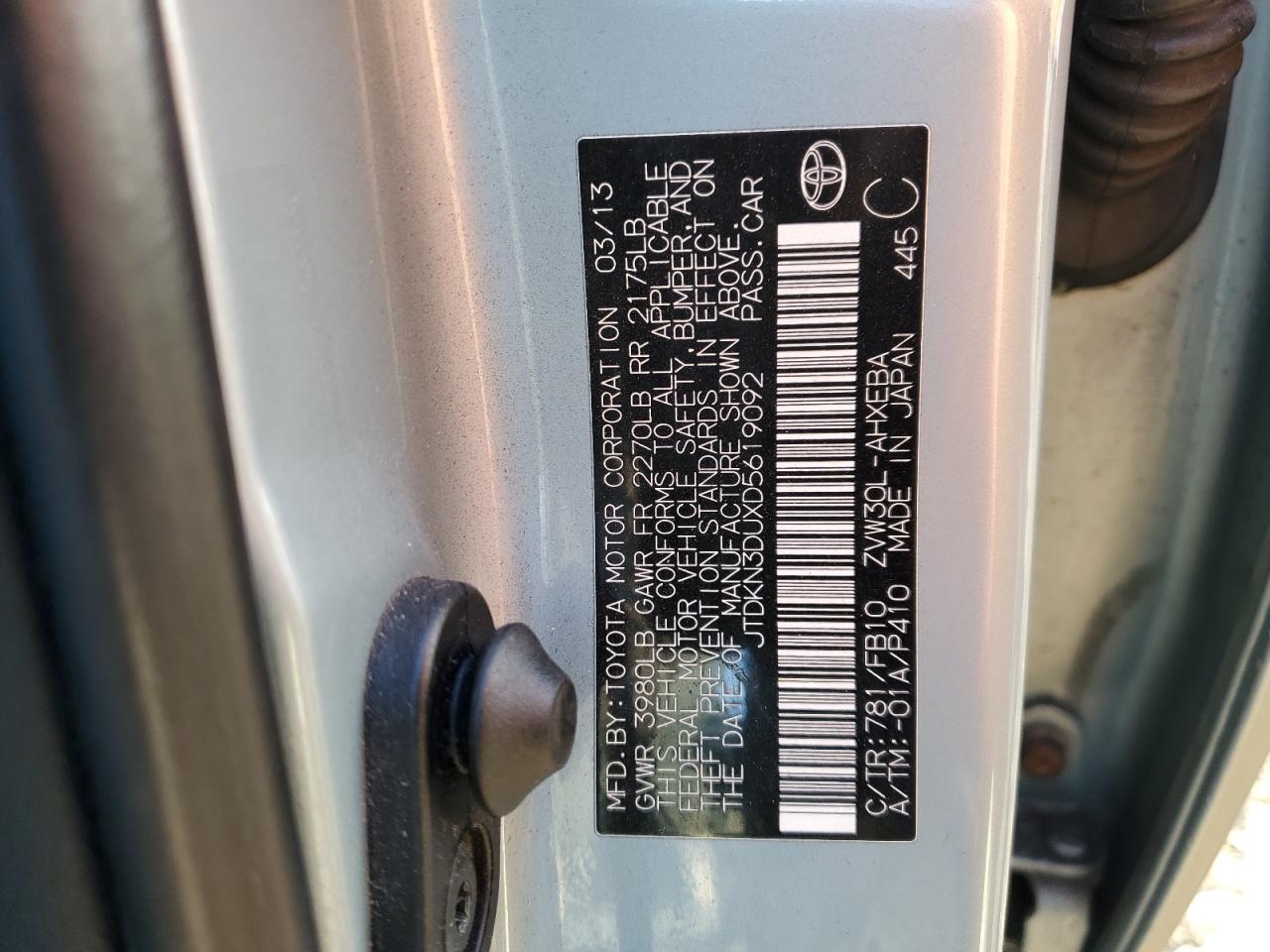 Колір БірюзовийЦиліндри 4VIN JTDKN3DUXD5619092Стан НевідомоУшкодження З боків