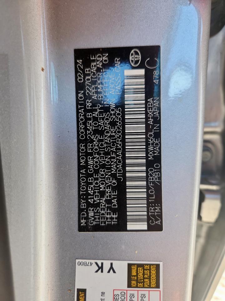 Колір СрібнийЦиліндри 4VIN JTDACAAU6R3026505Стан НевідомоУшкодження Передня або задня