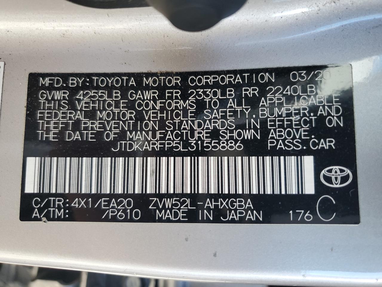 Колір СрібнийЦиліндри 4VIN JTDKARFP5L3155886Стан ЗаводитьсяУшкодження З боків