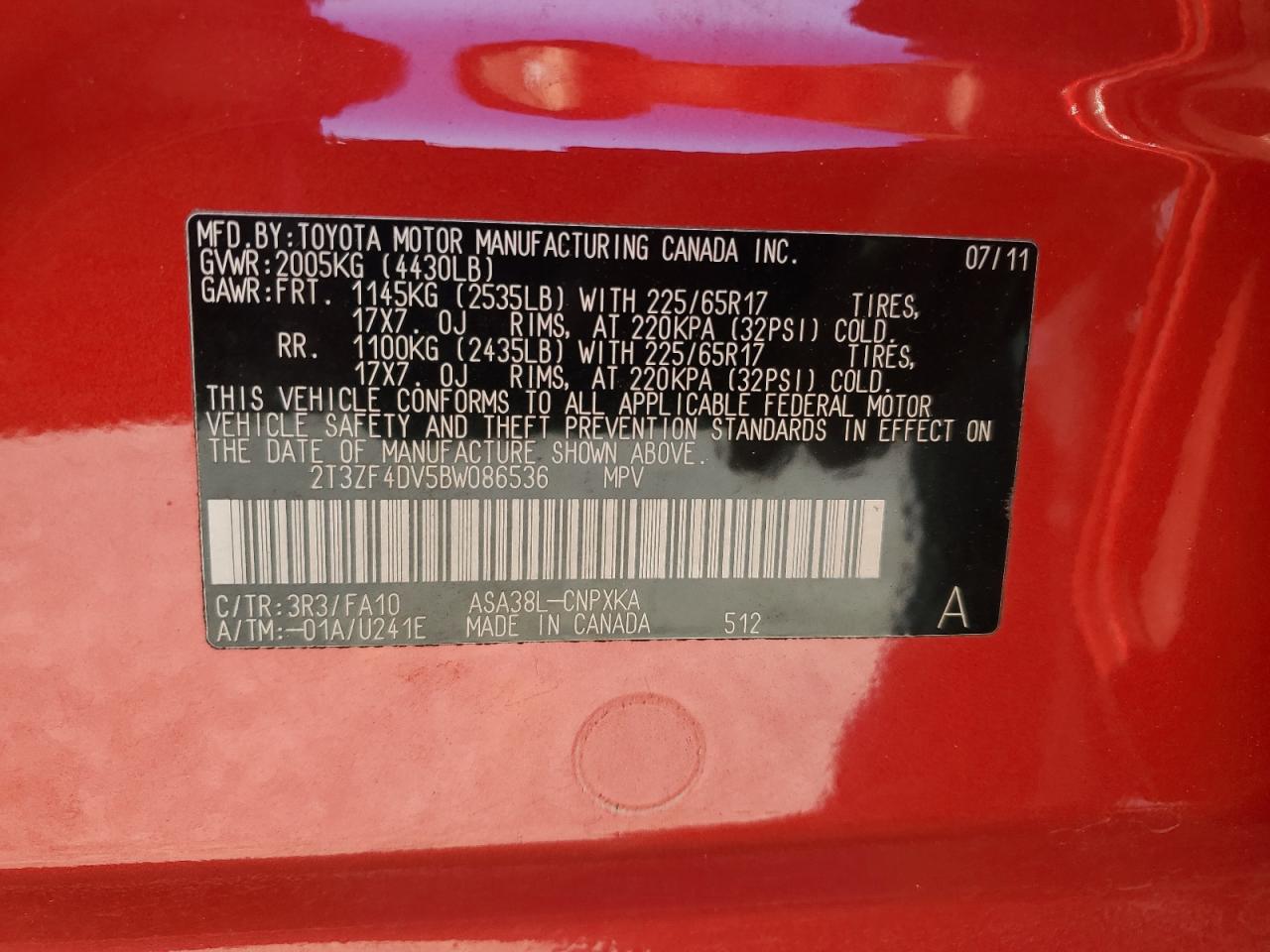 Колір ЧервонийЦиліндри 4VIN 2T3ZF4DV5BW086536Стан Заводиться та їде (перевірено)Ушкодження Передня або задня