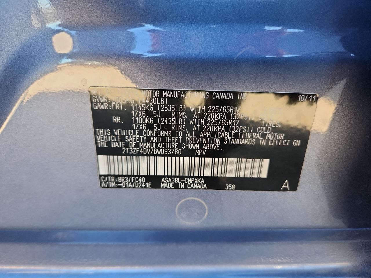 Колір СинійЦиліндри 4VIN 2T3ZF4DV7BW093780Стан Заводиться та їде (перевірено)Ушкодження Передня або задня