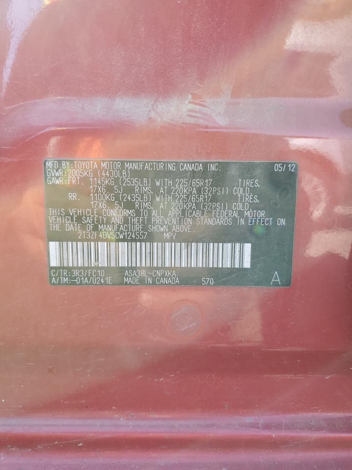 TOYOTA RAV4 2.5 2012 р.в., (2T3ZF4DV5CW124557) з США