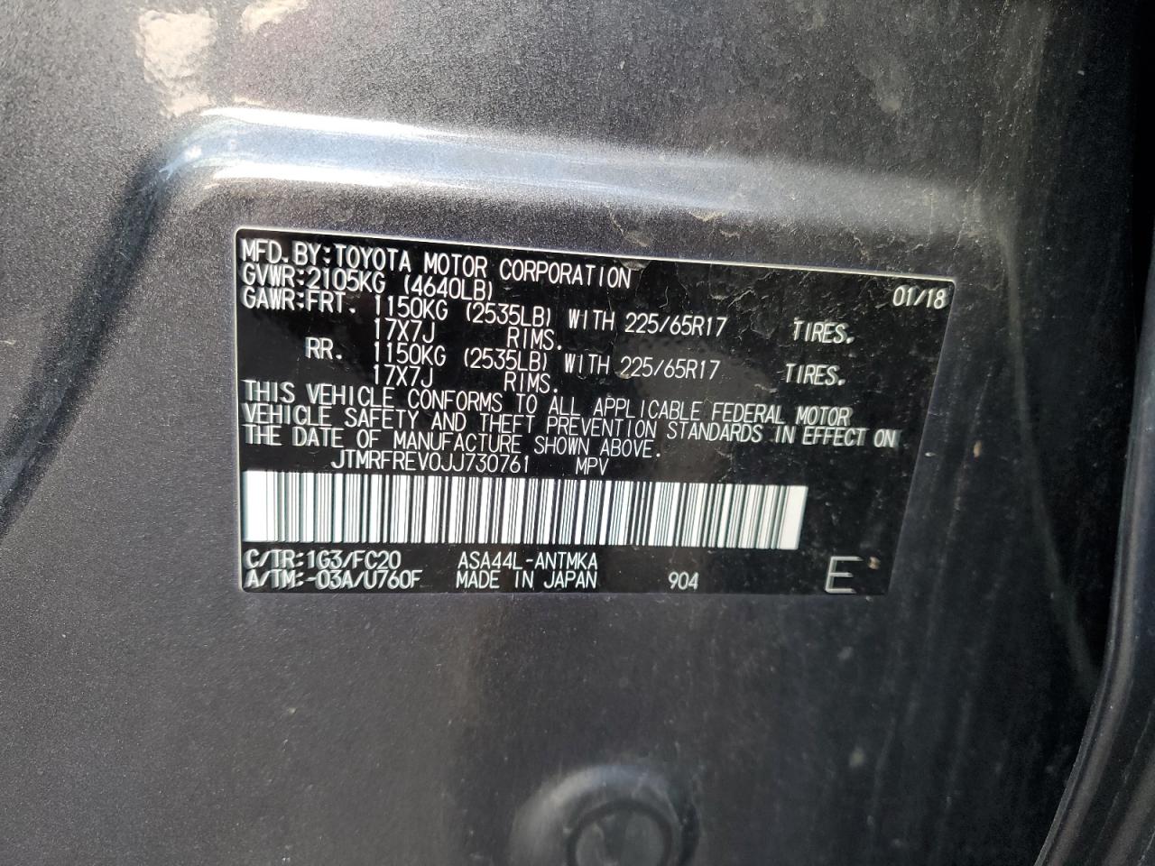 Колір СірийЦиліндри 4Привід Повний привідVIN JTMRFREV0JJ730761Стан Заводиться та їде (перевірено)Ушкодження Передня або задня