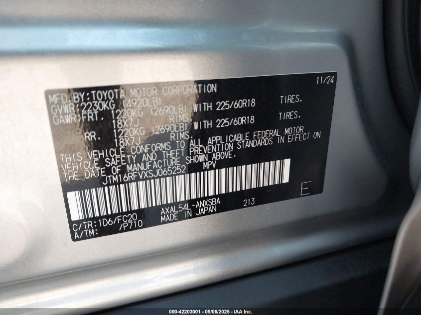 TOYOTA RAV4 HYBRID 2.5 2025 р.в., Повний привід (JTM16RFVXSJ065252) з США