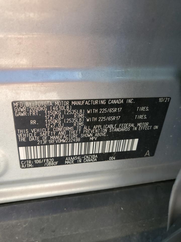 TOYOTA RAV4 2.5 2021 р.в., Повний привід (2T3F1RFV0MW232498) з США