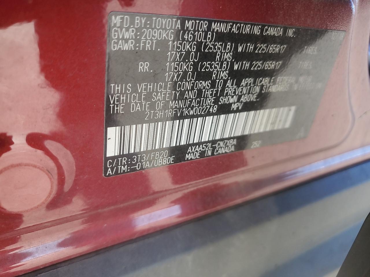 TOYOTA RAV4 2.5 2019 р.в., (2T3H1RFV1KW002748) з США
