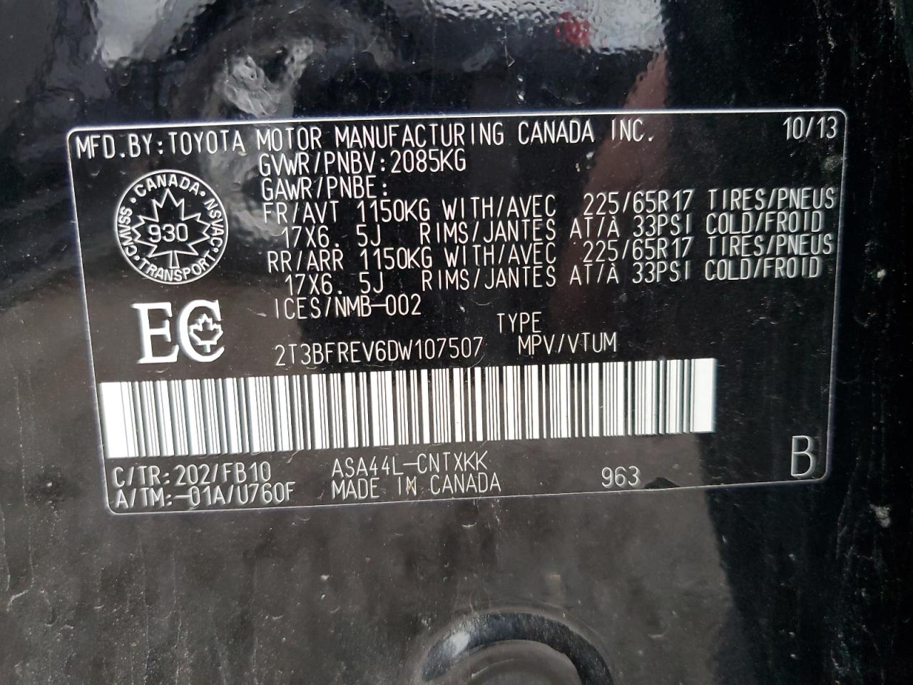 Колір ЧорнийЦиліндри 4Привід Повний привідVIN 2T3BFREV6DW107507Стан Заводиться та їде (перевірено)Ушкодження З боків