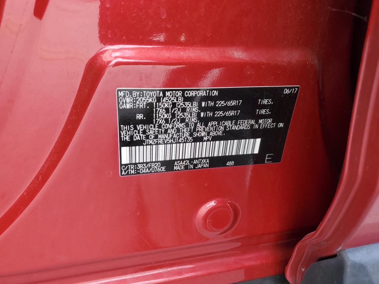 Колір ЧервонийЦиліндри 4VIN JTMZFREV5HJ145135Стан Заводиться та їде (перевірено)Ушкодження Задня