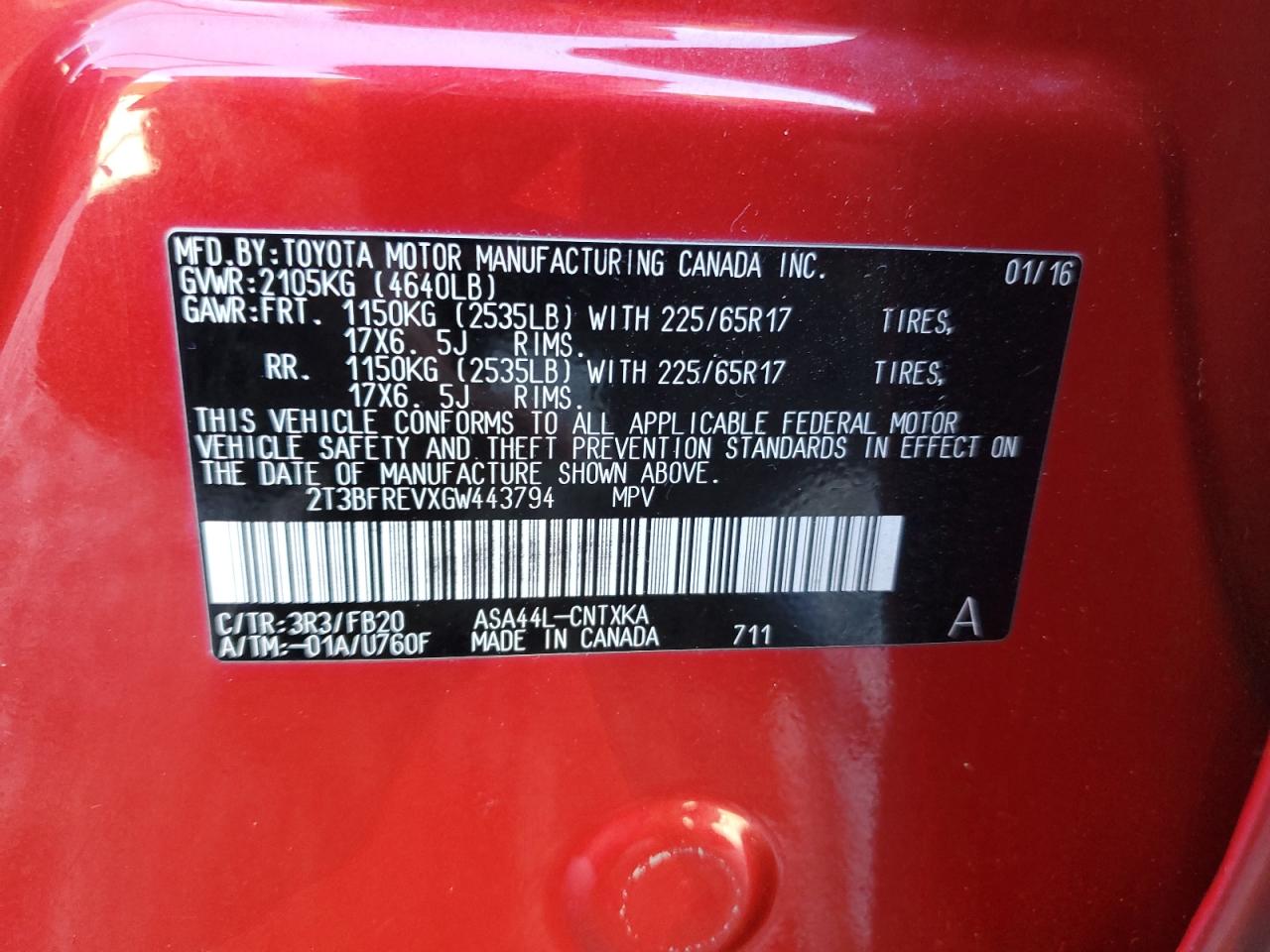 Колір ЧервонийЦиліндри 4Привід Повний привідVIN 2T3BFREVXGW443794Стан Заводиться та їде (перевірено)Ушкодження Задня
