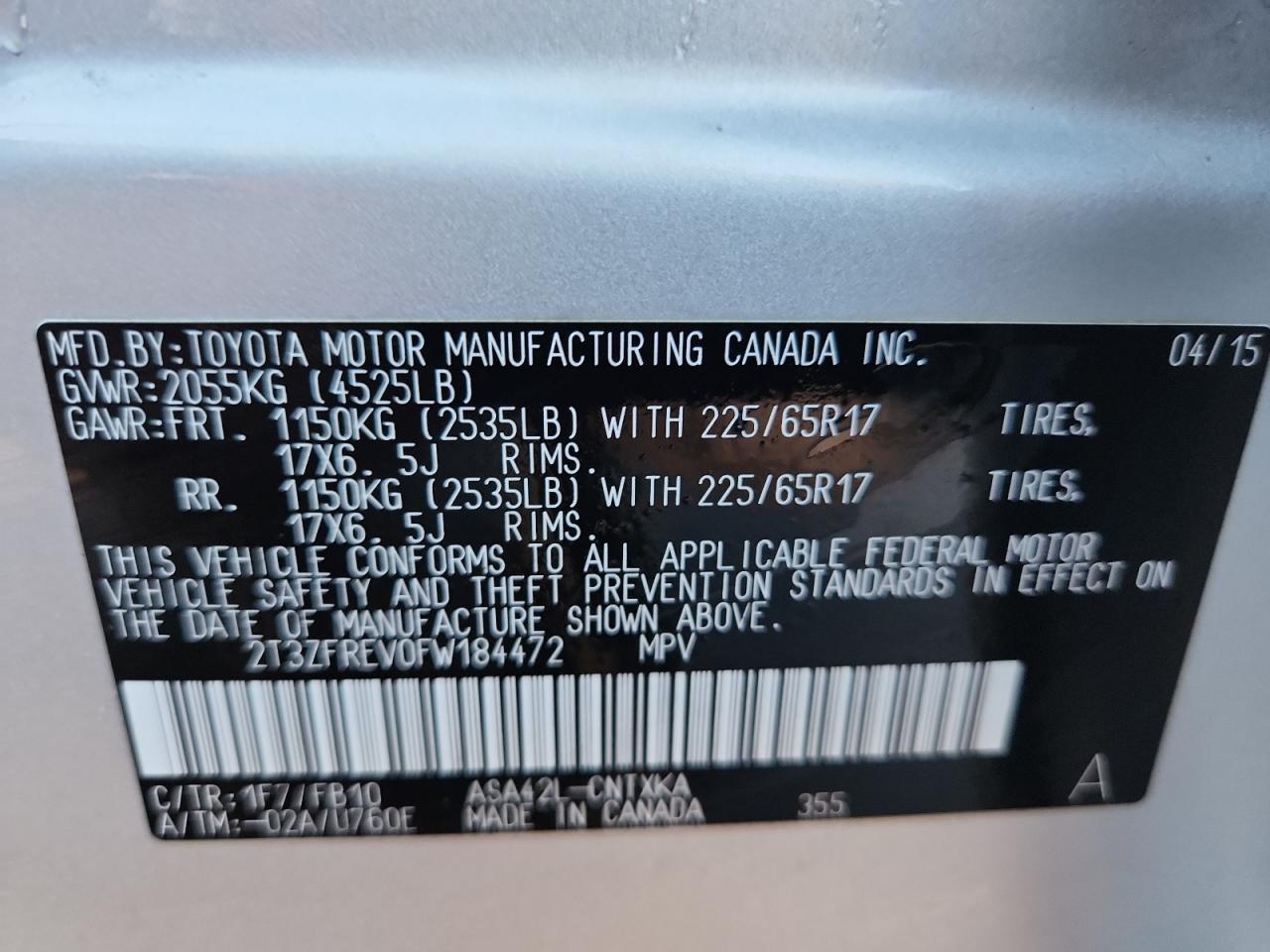 TOYOTA RAV4 2.5 2015 р.в., (2T3ZFREV0FW184472) з США