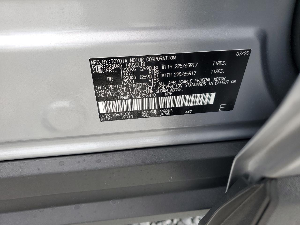 Колір СрібнийЦиліндри 4Привід Повний привідVIN JTMMWRFV3SD328810Стан НевідомоУшкодження Передня або задня