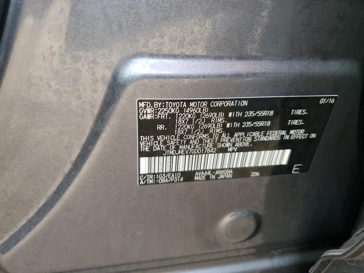 Колір СірийЦиліндри 4Привід Повний привідVIN JTMDJREV7GD017842Стан НевідомоУшкодження Передня або задня