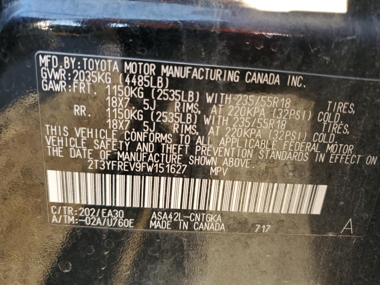 Колір ЧорнийЦиліндри 4VIN 2T3YFREV9FW151627Стан Заводиться та їде (перевірено)Ушкодження Задня