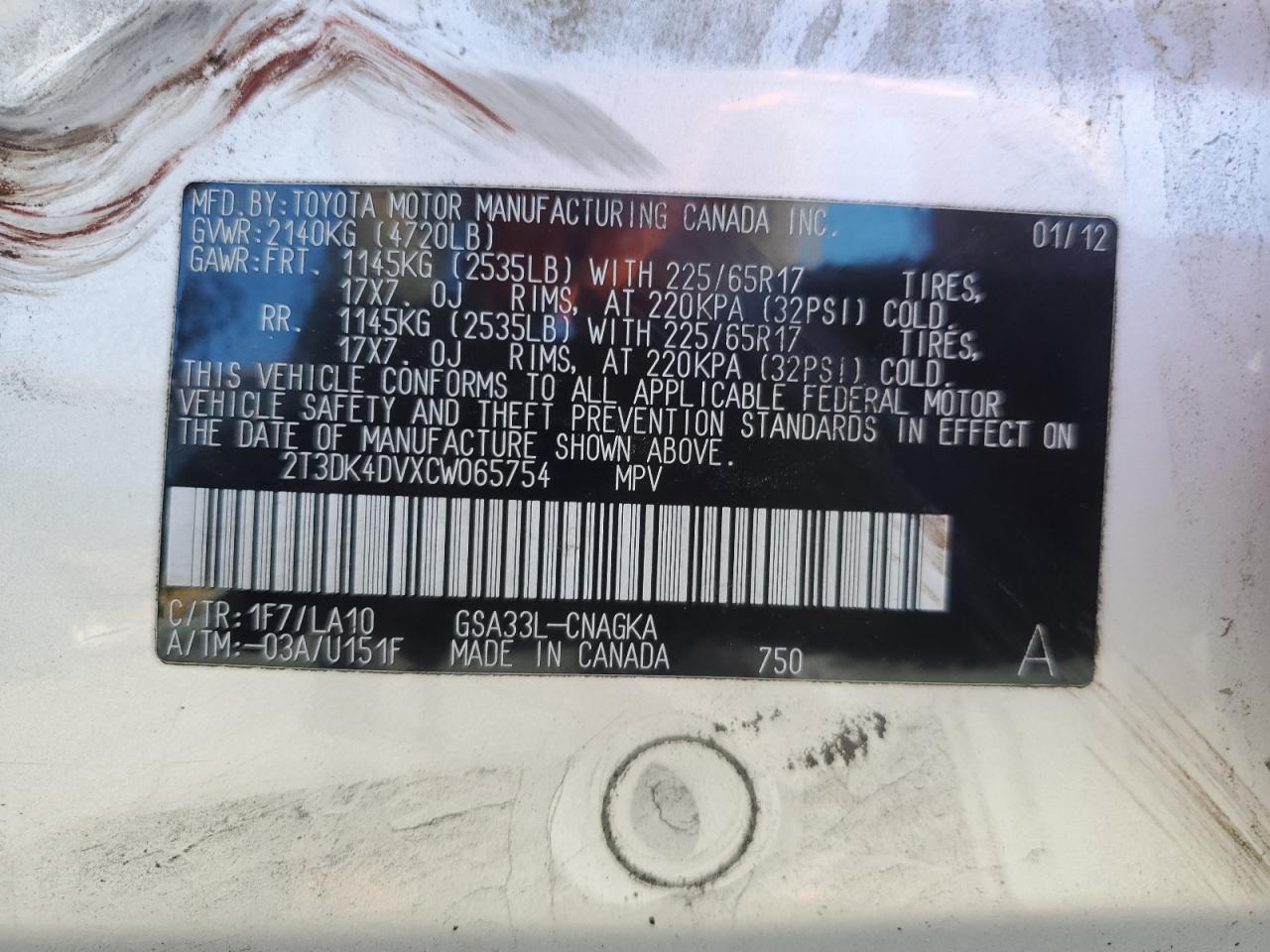 TOYOTA RAV4 3.5 2012 р.в., Повний привід (2T3DK4DVXCW065754) з США