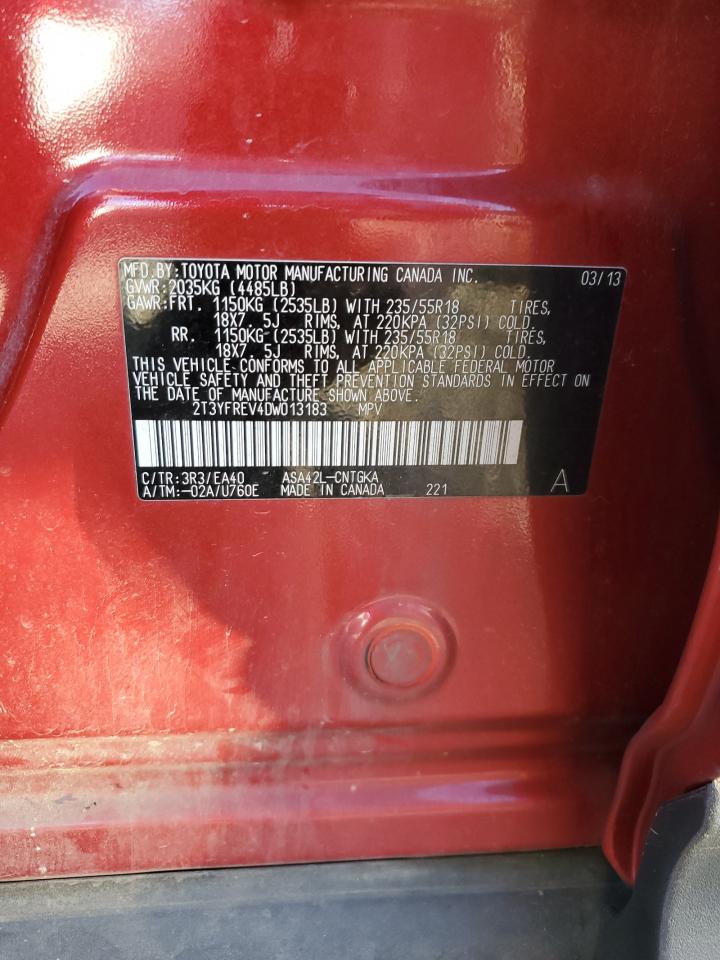 Колір ЧервонийЦиліндри 4VIN 2T3YFREV4DW013183Стан Заводиться та їде (перевірено)Ушкодження Передня або задня
