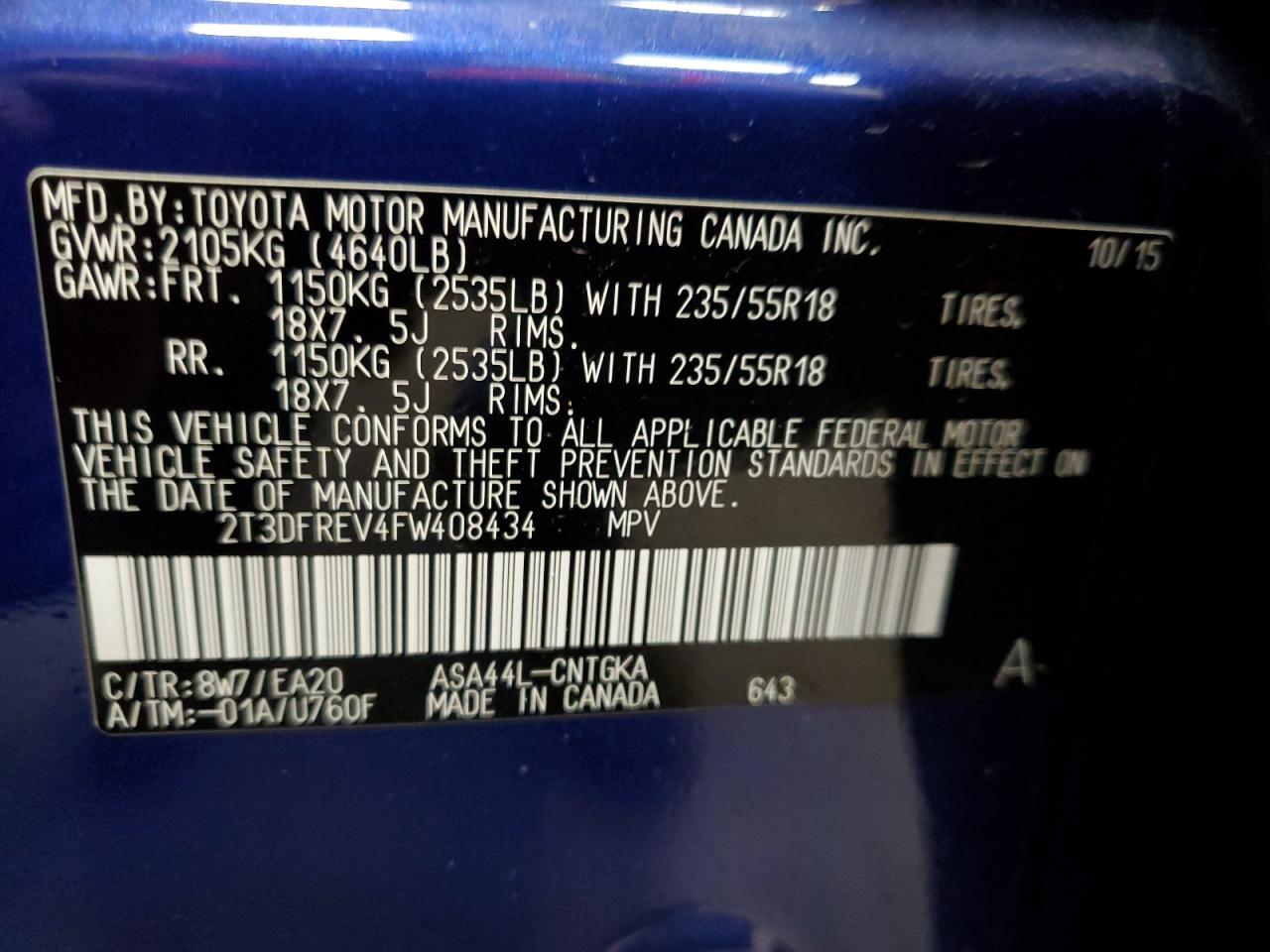 Колір СинійЦиліндри 4Привід Повний привідVIN 2T3DFREV4FW408434Стан Заводиться та їде (перевірено)Ушкодження Задня
