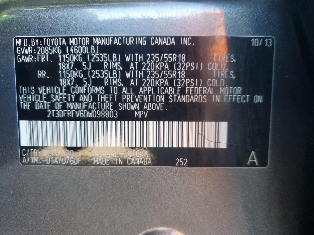Колір СірийЦиліндри 4Привід Повний привідVIN 2T3DFREV6DW098803Стан НевідомоУшкодження Передня або задня