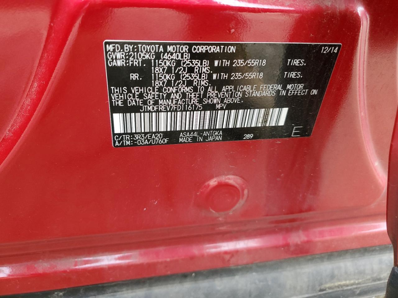Колір ЧервонийЦиліндри 4Привід Повний привідVIN JTMDFREV7FD116175Стан ЗаводитьсяУшкодження Передня або задня