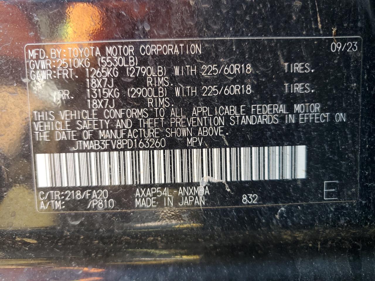 Колір ЧорнийЦиліндри 4Привід Повний привідVIN JTMAB3FV8PD163260Стан Заводиться та їде (перевірено)Ушкодження Передня або задня