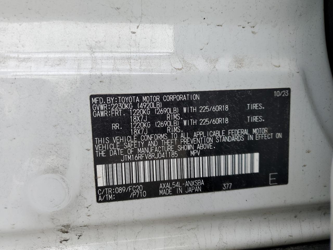 TOYOTA RAV4 2.5 2024 р.в., Повний привід (JTM16RFV8RJ041185) з США