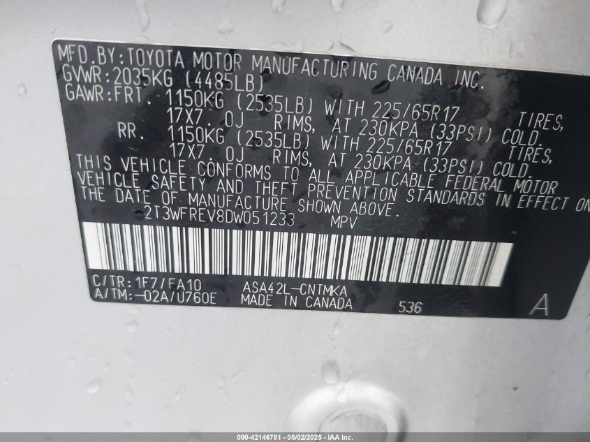 TOYOTA RAV4 2.5 2013 р.в., Передній привід (2T3WFREV8DW051233) з США