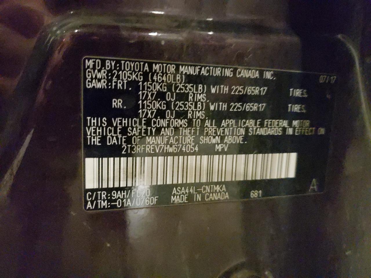 TOYOTA RAV4 2.5 2017 р.в., Повний привід (2T3RFREV7HW674054) з США