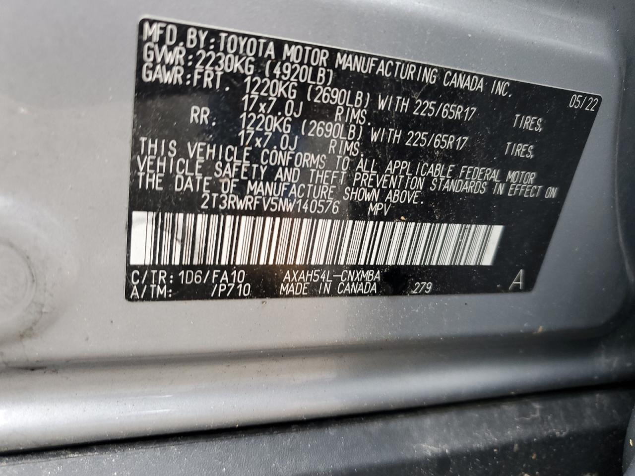 Колір СрібнийЦиліндри 4Привід Повний привідVIN 2T3RWRFV5NW140576Стан НевідомоУшкодження З боківДата аукціону 2025-11-03