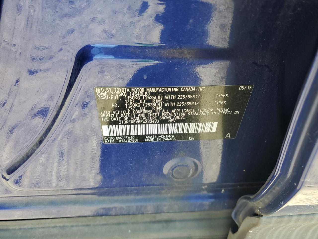 TOYOTA RAV4 2.5 2015 р.в., Повний привід (2T3RFREV6FW333483) з США