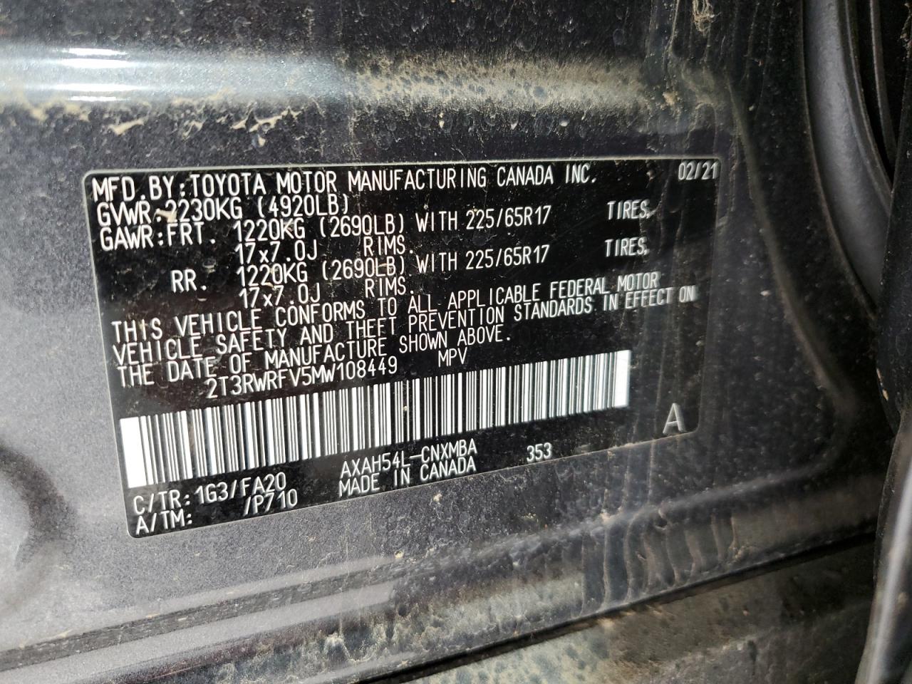 TOYOTA RAV4 2.5 2021 р.в., Повний привід (2T3RWRFV5MW108449) з США