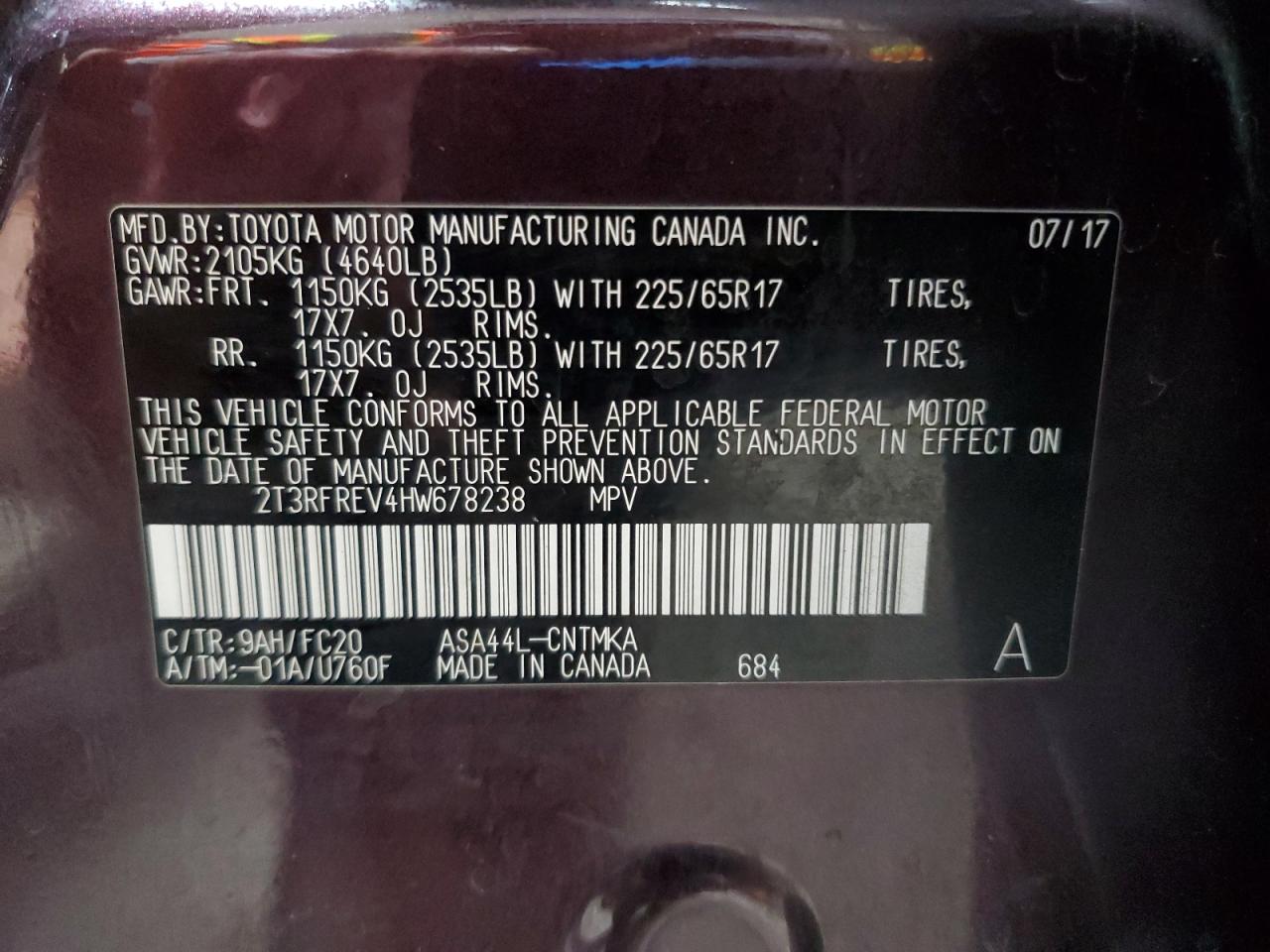 TOYOTA RAV4 2.5 2017 р.в., Повний привід (2T3RFREV4HW678238) з США