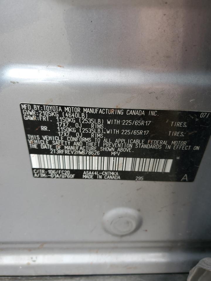 TOYOTA RAV4 2.5 2017 р.в., Повний привід (2T3RFREV2HW678626) з США