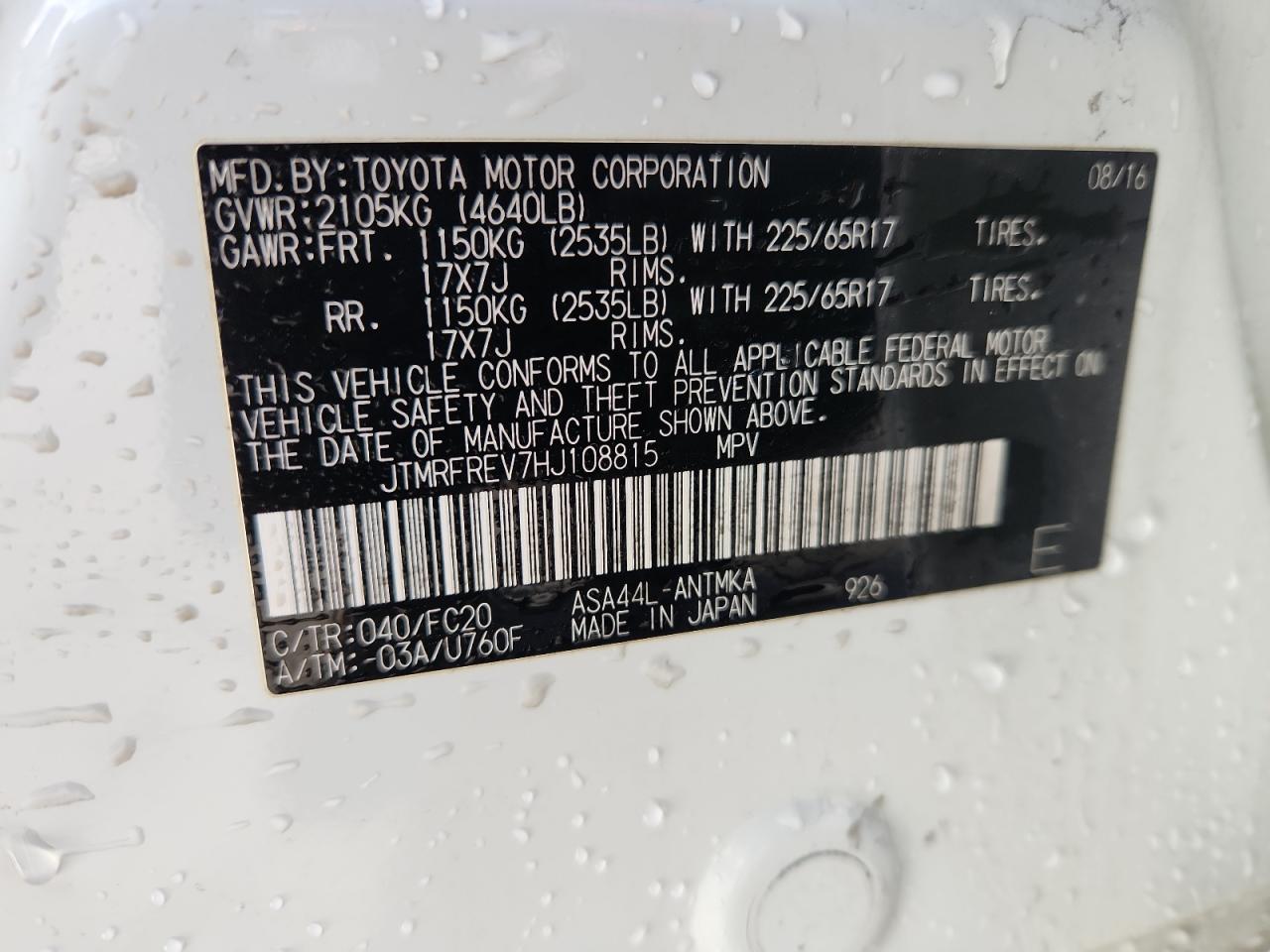 Колір БілийЦиліндри 4Привід Повний привідVIN JTMRFREV7HJ108815Стан НевідомоУшкодження Задня