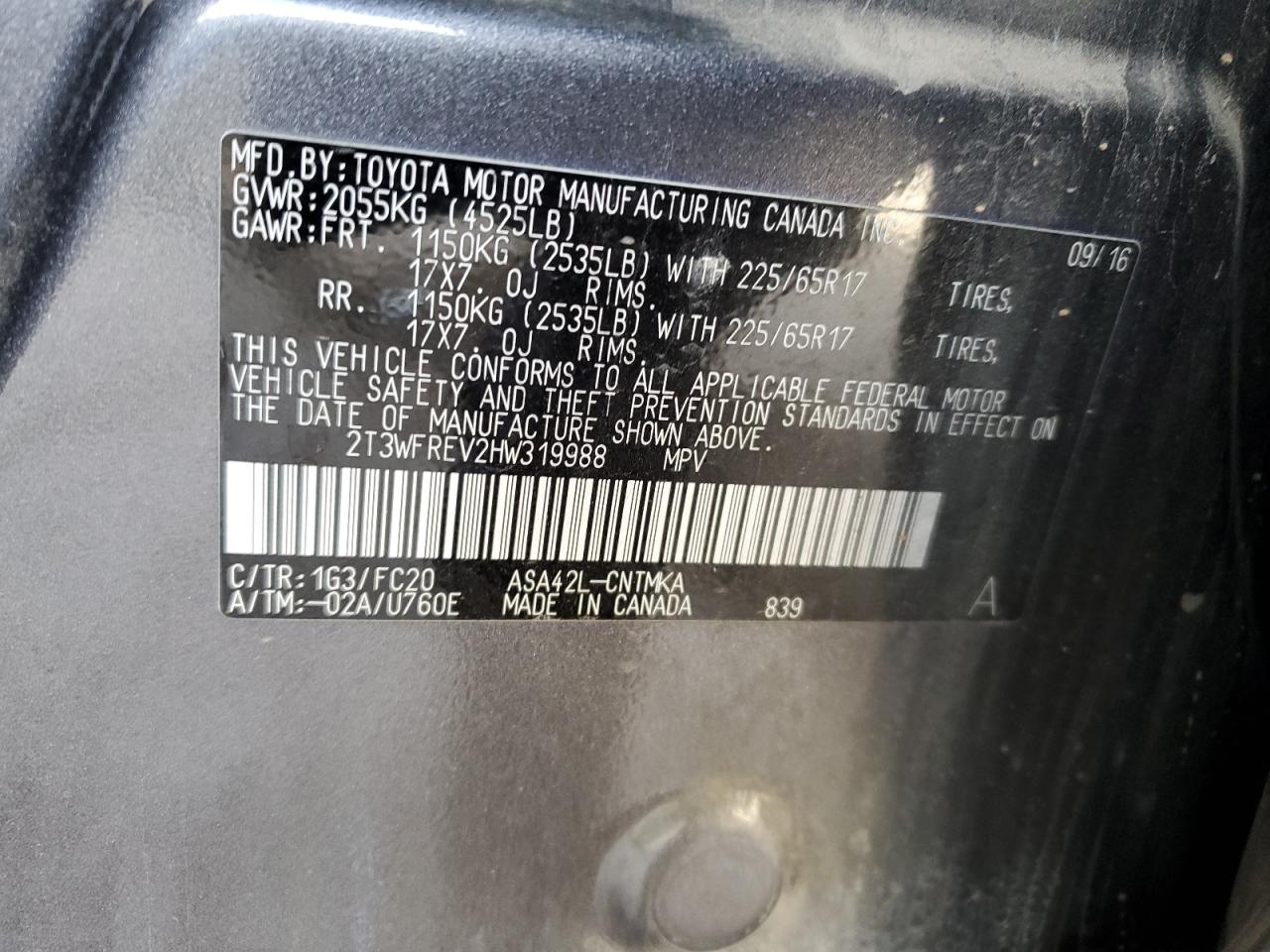 TOYOTA RAV4 2.5 2017 р.в., (2T3WFREV2HW319988) з США