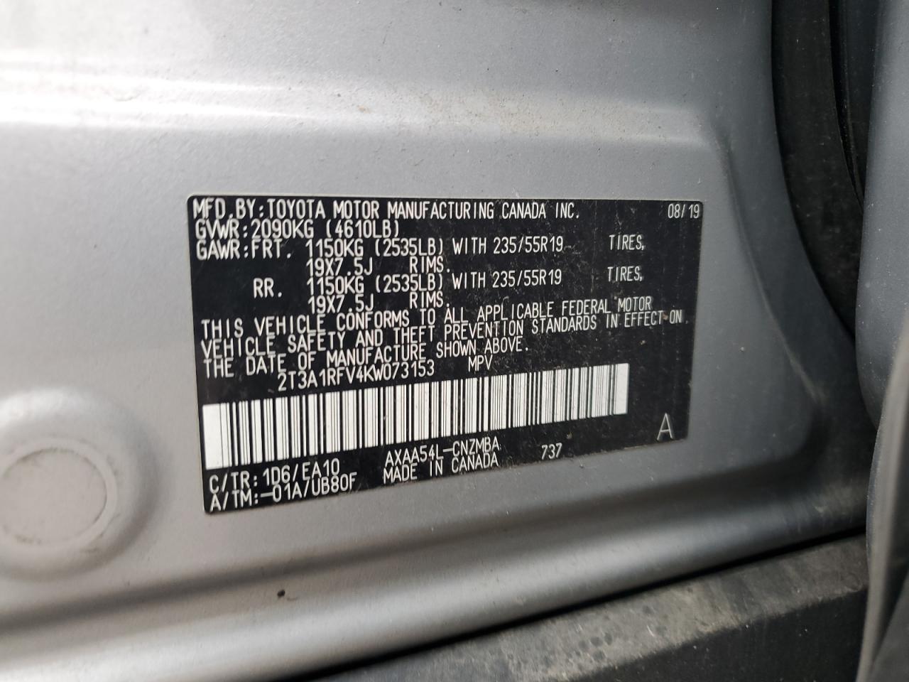 TOYOTA RAV4 2.5 2019 р.в., Повний привід (2T3A1RFV4KW073153) з США