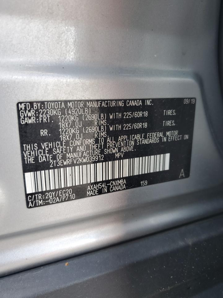 TOYOTA RAV4 2.5 2019 р.в., Повний привід (2T3EWRFV2KW039912) з США