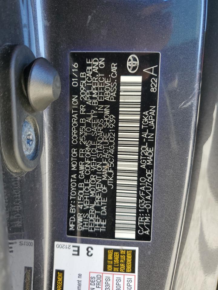Колір Деревне вугілляЦиліндри 4VIN JTKJF5C74GJ021939Стан НевідомоУшкодження Передня або задня