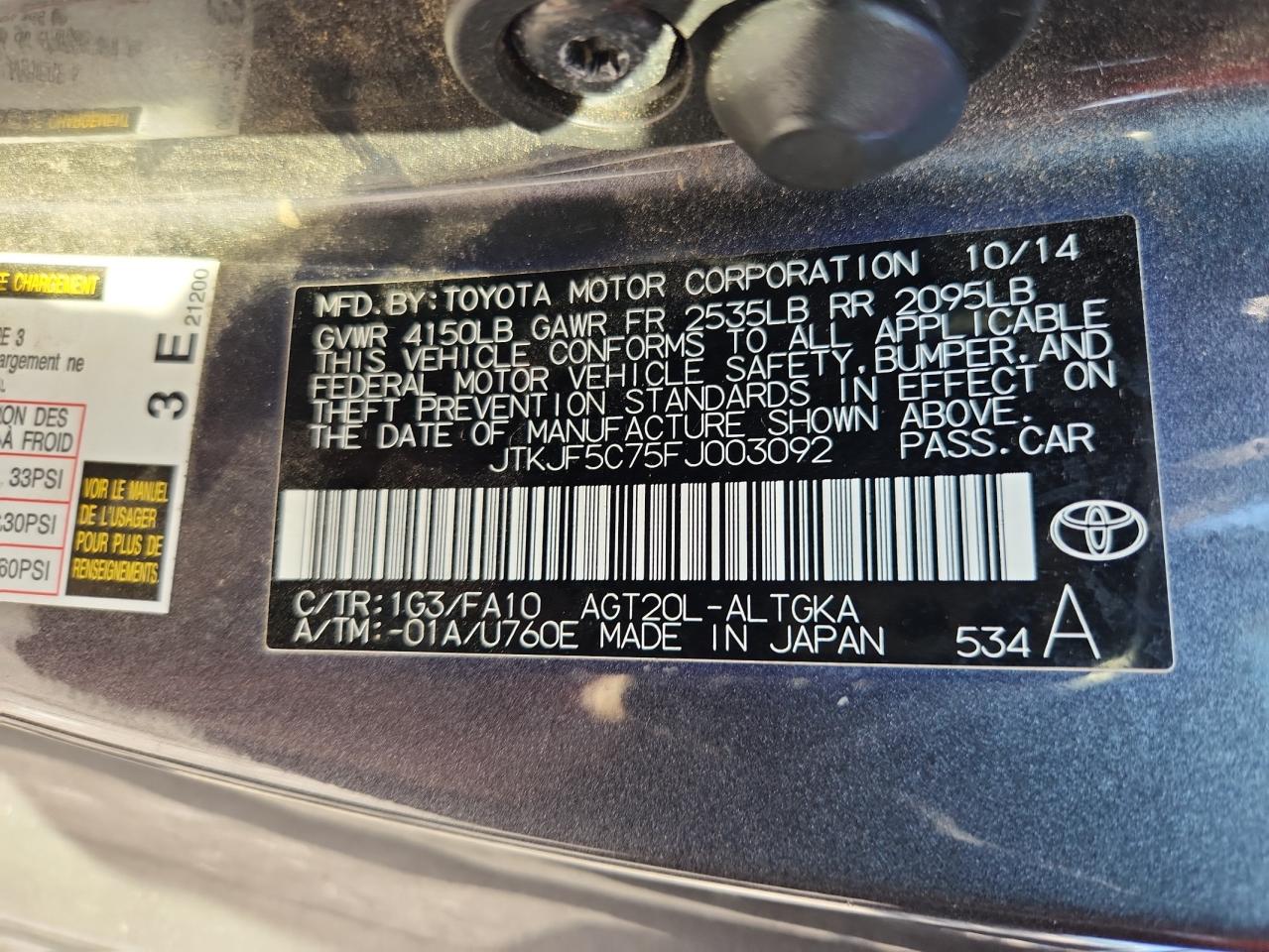 Колір СірийЦиліндри 4VIN JTKJF5C75FJ003092Стан НевідомоУшкодження Передня або задня