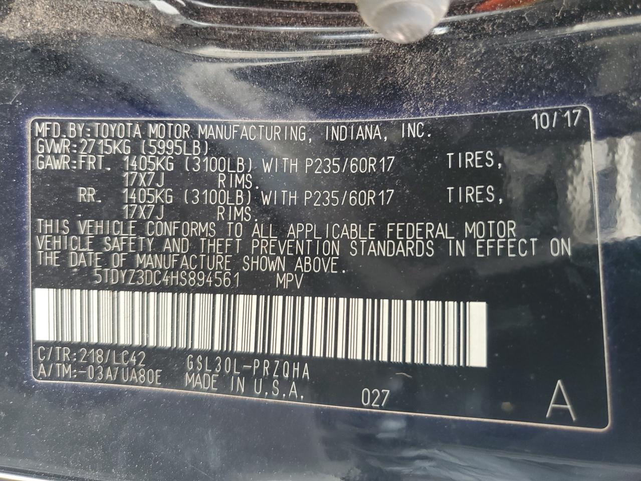 Колір ЧорнийЦиліндри 6VIN 5TDYZ3DC4HS894561Стан НевідомоУшкодження Передня або задня
