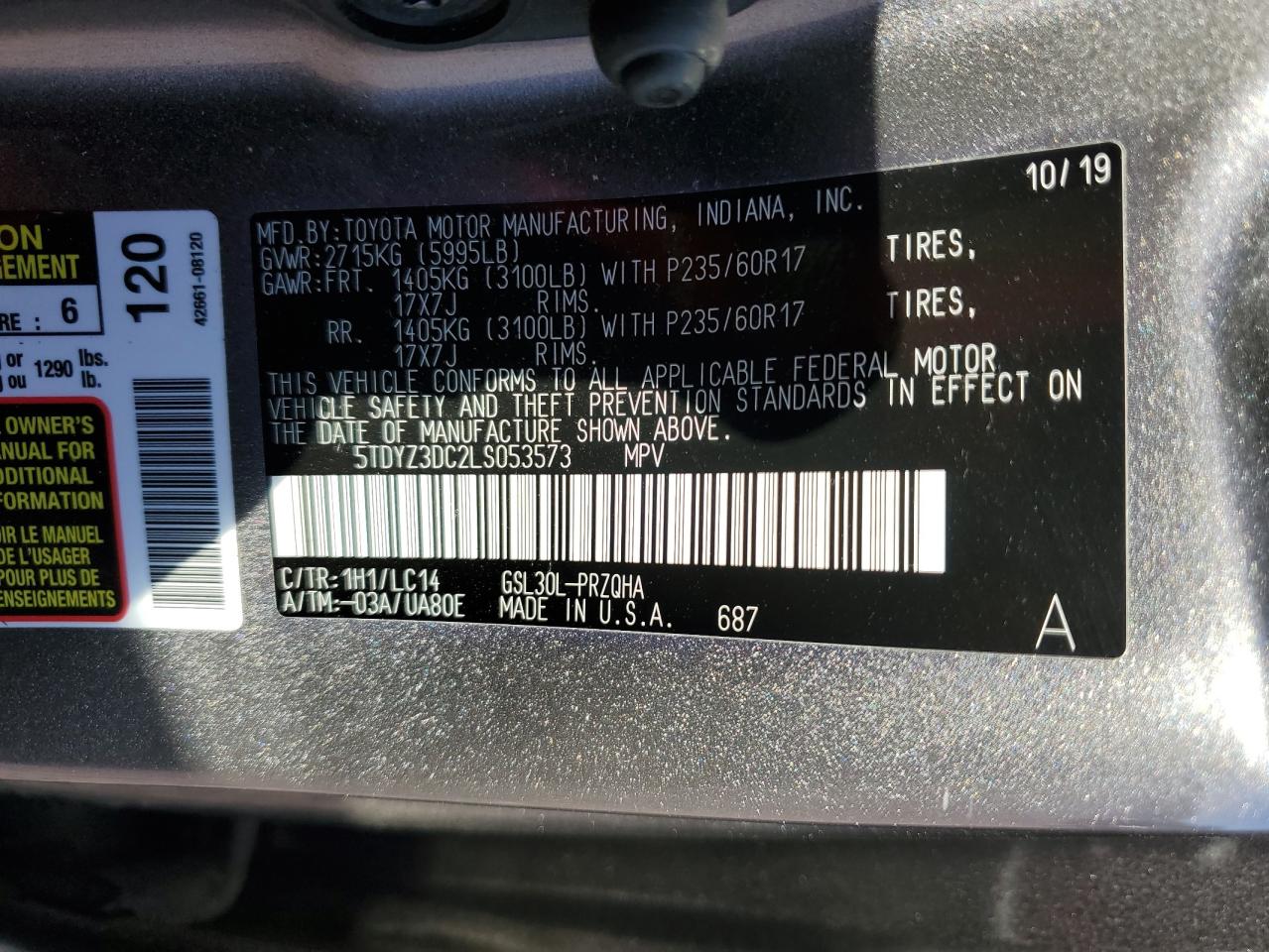 TOYOTA SIENNA 3.5 2020 р.в., (5TDYZ3DC2LS053573) з США