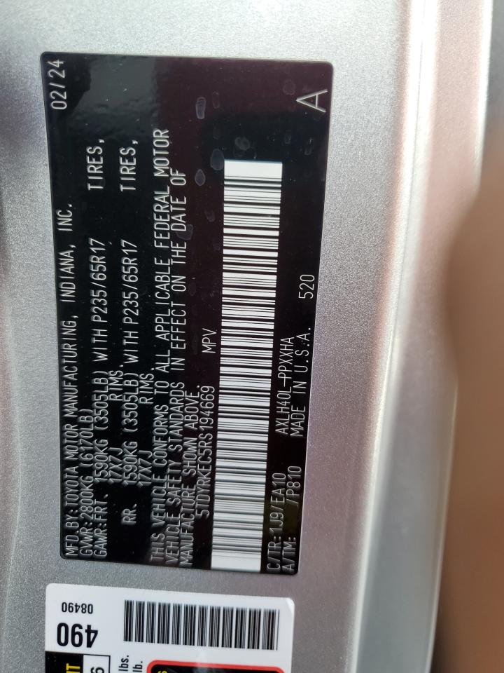 Колір СрібнийЦиліндри 4VIN 5TDYRKEC5RS194669Стан Заводиться та їде (перевірено)Ушкодження ЗадняДата аукціону 2025-11-03
