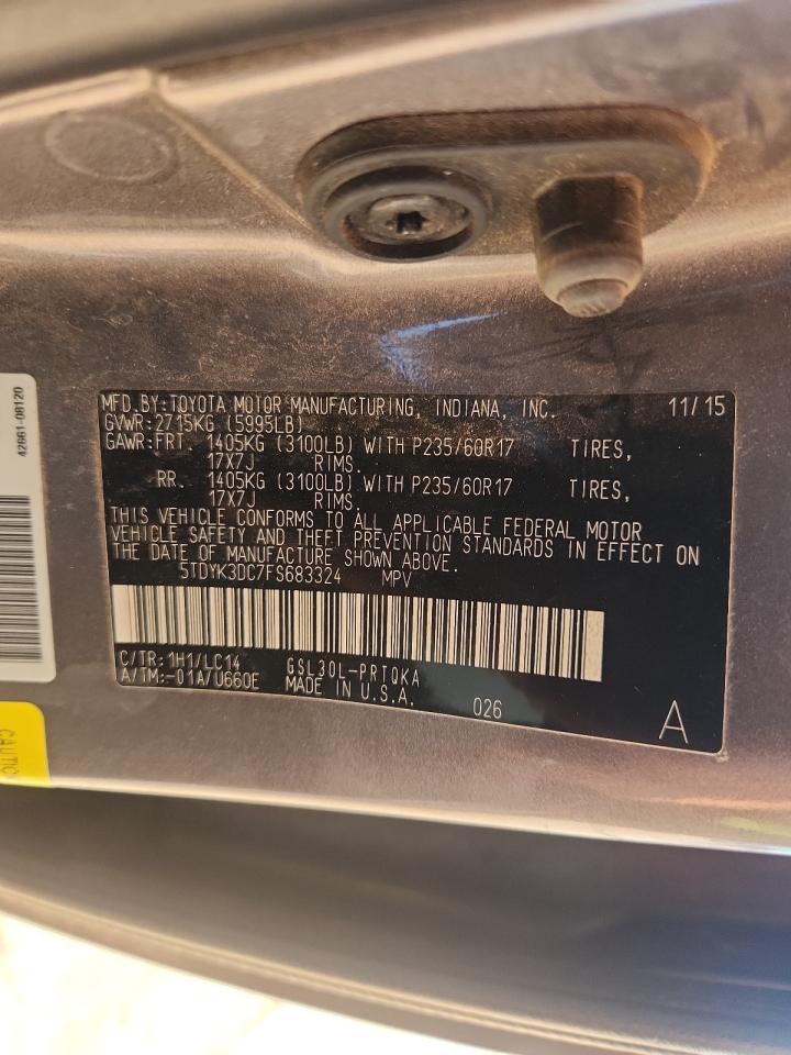 TOYOTA SIENNA 3.5 2015 р.в., (5TDYK3DC7FS683324) з США