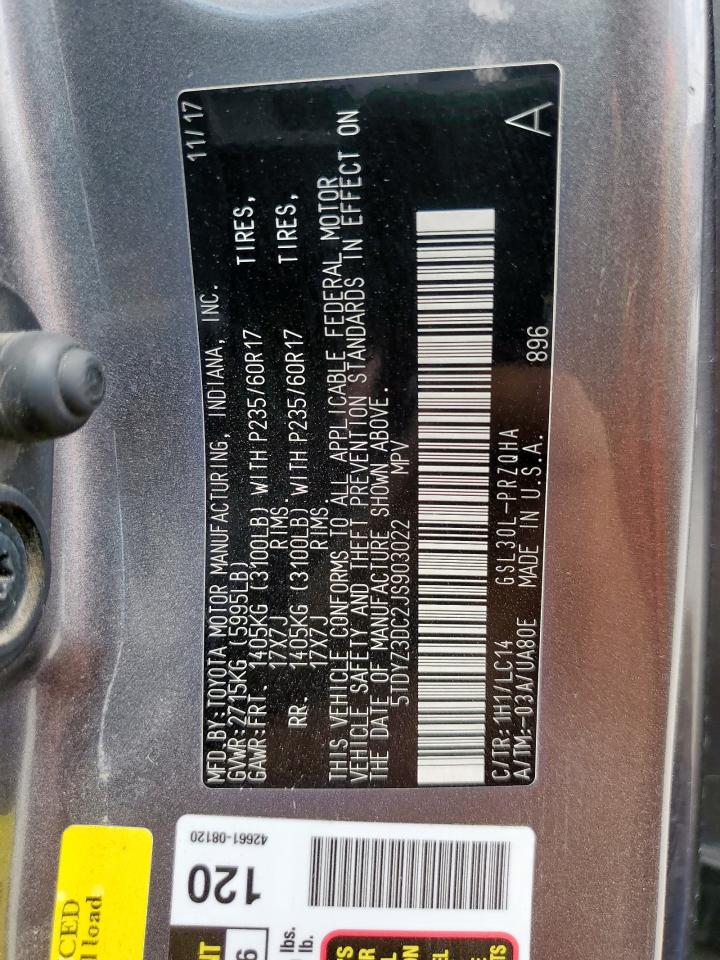 Колір СірийЦиліндри 6VIN 5TDYZ3DC2JS903022Стан Заводиться та їде (перевірено)Ушкодження Передня або задня