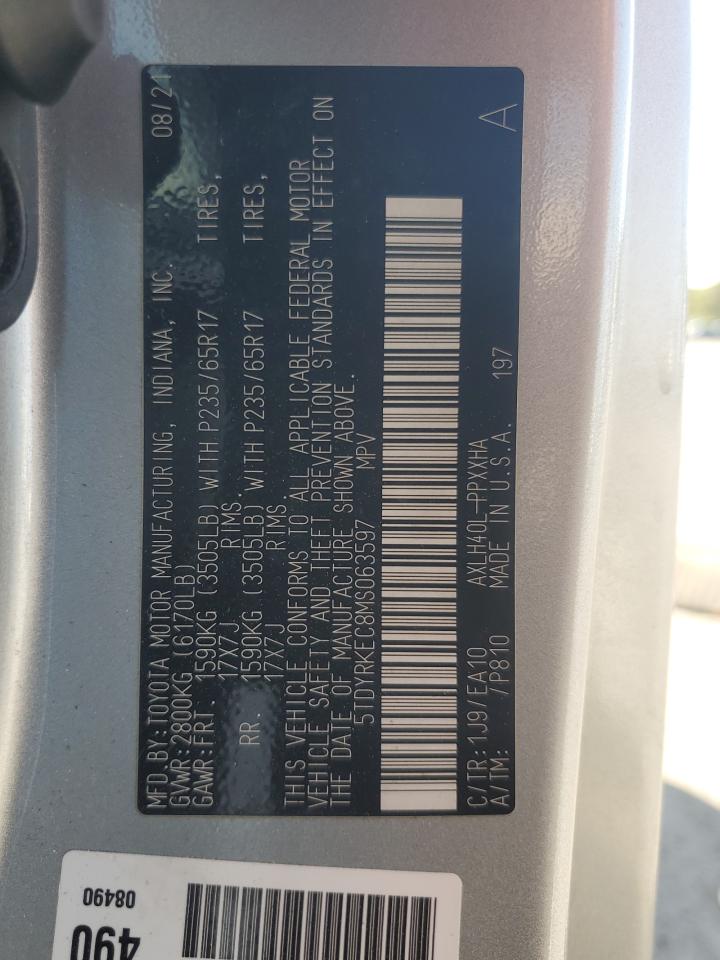 TOYOTA SIENNA 2.5 2021 р.в., (5TDYRKEC8MS063597) з США