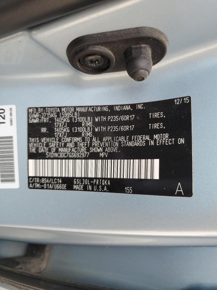 TOYOTA SIENNA 3.5 2016 р.в., (5TDYK3DC7GS692977) з США