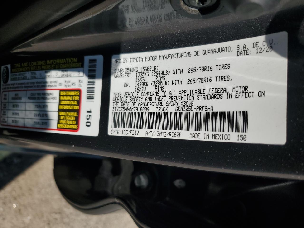Колір СірийЦиліндри 6Привід 4x4 з заднім приводомVIN 3TYCZ5AN0MT018886Стан Заводиться та їде (перевірено)Ушкодження НизДата аукціону 2025-11-03