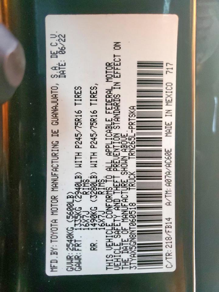 TOYOTA TACOMA 2.7 2022 р.в., Задній привід (3TYAX5GN8NT060518) з США