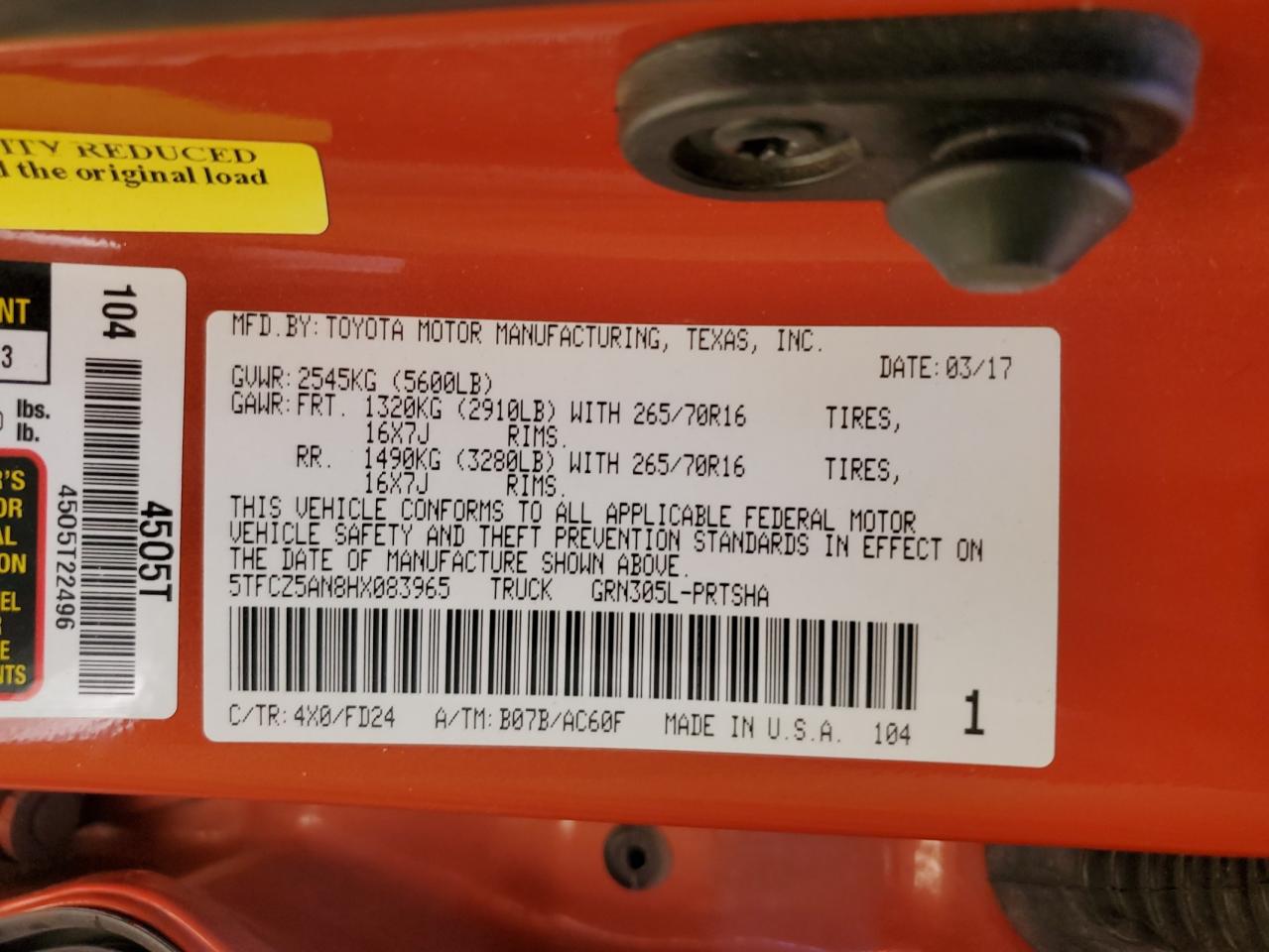 TOYOTA TACOMA 3.5 2017 р.в., 4x4 з заднім приводом (5TFCZ5AN8HX083965) з США