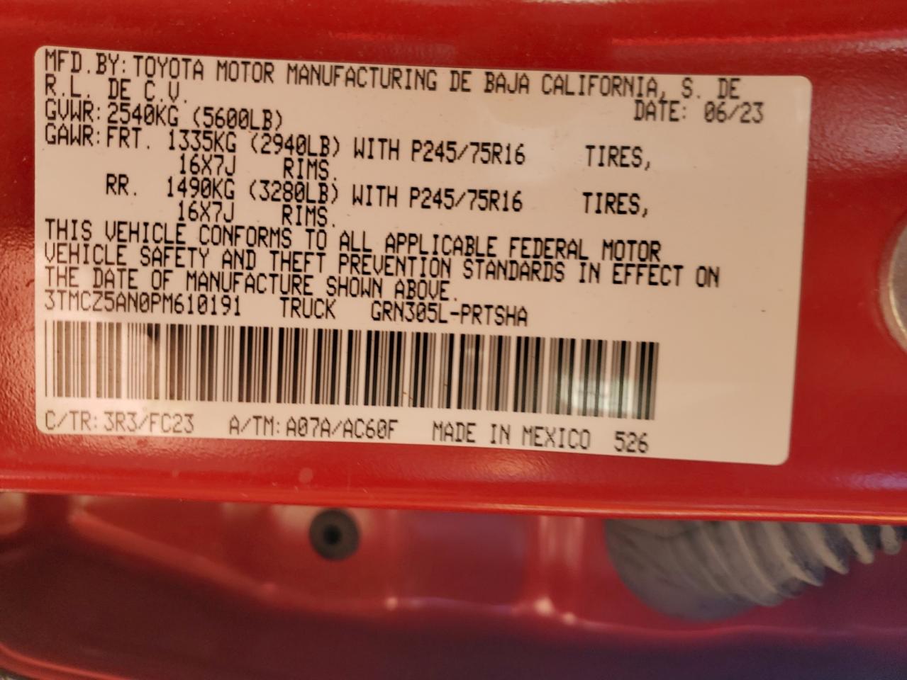 2023 TOYOTA TACOMA SR V6/SR5 V6/TRAIL EDITION/TRD OFF ROAD/TRD PRO/TRD SPORT